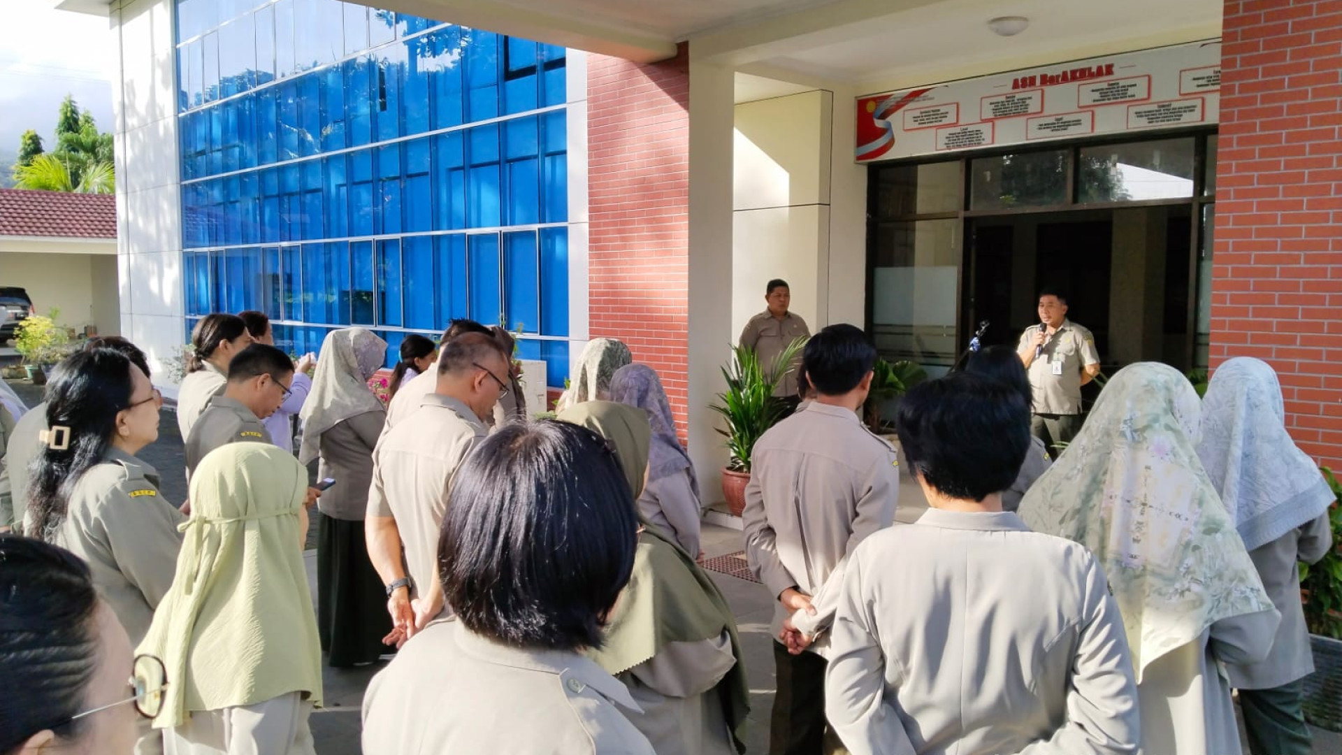 Antusiasme pegawai dalam menyimak pesan-pesan yang disampaikan oleh Kasubbag TU BSIP Sulawesi Utara, salah satunya Kegiatan Operasi Pasar Pangan Murah 24/2 sd 29/3, yang menghadirkan 5 bahan pokok (24/2).
