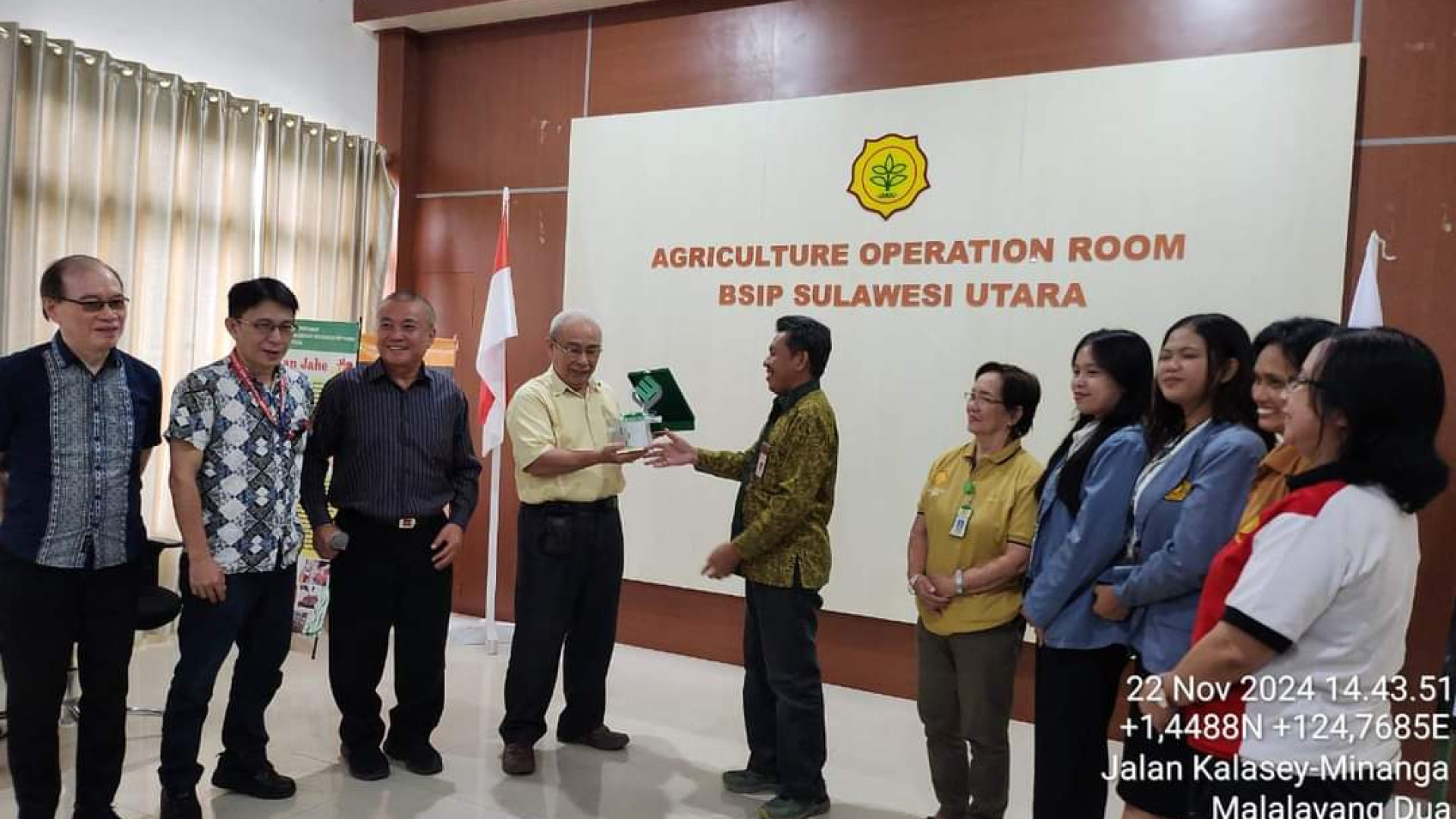 Akhirnya Mahasiswa Magang Jurusan Program Studi Agroteknologi Fakultas Pertanian UNSRAT Ini Berhasil Menyelesaikan Tugasnya di BSIP Sulawesi Utara pada 22 November 2024, Didampingi Dosen Pembimbing Lapangnya di Sudut Ruangan AOR BSIP Sulut.