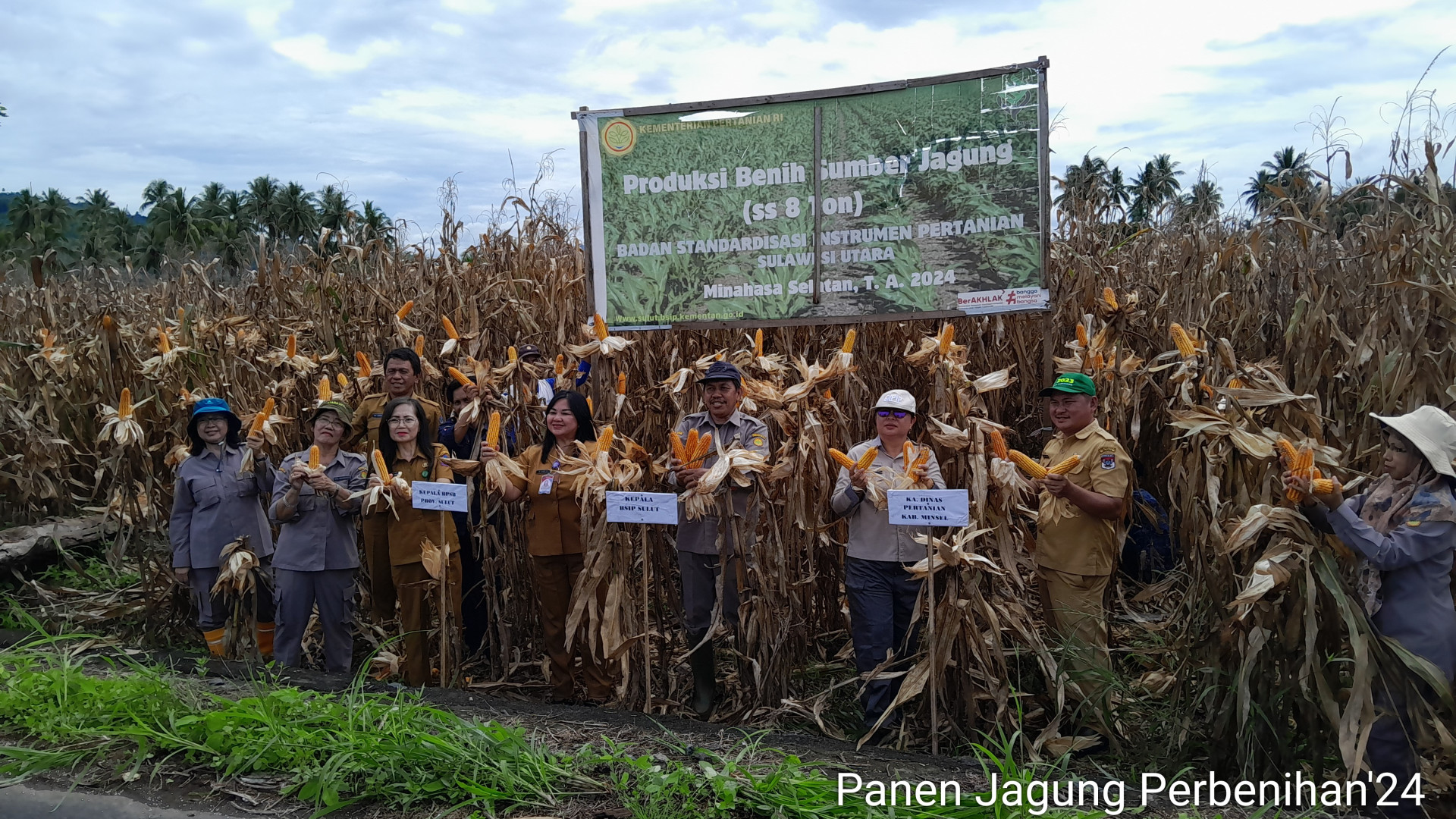 Antusiasme Dinas Terkait Beserta Poktan Berdikari dalam Mendukung Panen Jagung Perbenihan BSIP Sulawesi Utara Seluas 3,5 Ha dengan Target 8 Ton di Paslaten (3/12).